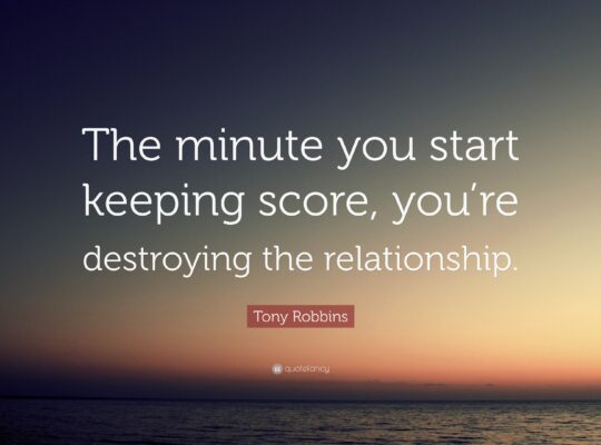 “I cooked dinner last night, and you can’t even take out the trash?” Ever heard that one? Or how about “I’m always the one who has to step up.” Or “I do all the work around here!” Do any of those sound familiar? There are a million more variations. It’s called score keeping. Not like …