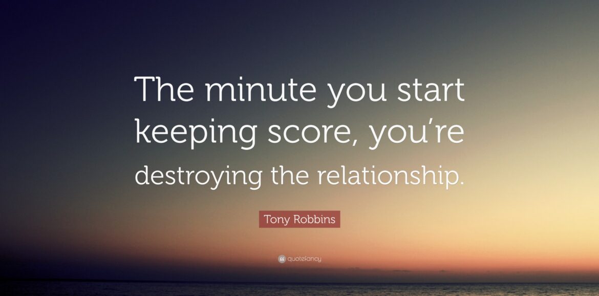 It’s noticing what you do and the other person doesn’t. It’s keeping track of the other person’s mistakes or the perceived imbalances in the relationship. It’s a running tally of who did or didn’t do what.